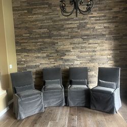 Restoration Hardware 4 Dining Chairs Track Arm with Casters Wheels Dark Grey Velvet Slipcover RH $850Mesa, AZ
