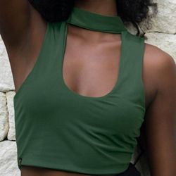 LIKE NEW BEAR DANCE FOREST GREEN CROP TANK TOP CHOKER HALTER SHIRT$25San Tan Valley, AZ