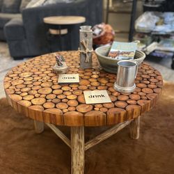 Round table aged driftwood carved wood lattice coffee table 18 inches tall 27 inches wide $150Phoenix, AZ