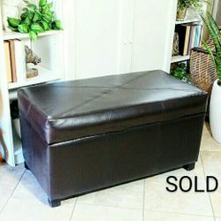 Storage Ottoman, Hinged Lid, Faux Leather Brown 32"x17"x16" - CASH ONLY - PICKUP ONLY - foot stool, hassock, bench, coffee table $40Chandler, AZ
