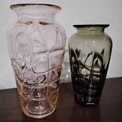 2 MG Margie's Garden glass blown vases blushing pink smokey charcoal modern design$60Phoenix, AZ