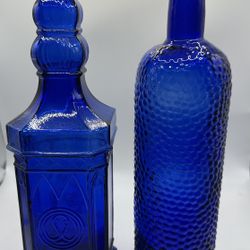 Cobalt Blue Ornate Recycled Glass Bottles Made In Spain Vintage Set Of 2$52Chandler, AZ