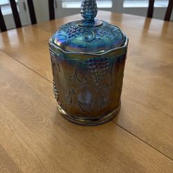 Vintage Iridescent Carnival Glass Lidded Jar Grape Pattern (Please Read Description$10Gilbert, AZ