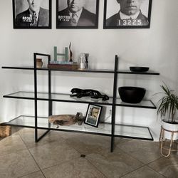 Early 1960s Mid Century Modern Glass & Black Metal Console Table Entry Way Shelves $500Phoenix, AZ