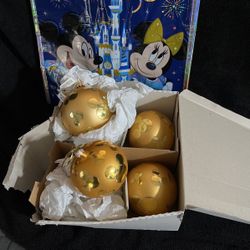 Disney 4 Pc -4” GOLD GLASS MICKEY ORNAMENTS -HARD TO FIND ! Cash Only Pls ! More Disney In Profile Pls Scroll Slowly To Bottom To Reveal Treasure ! $49Mesa, AZ
