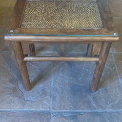 Rattan Thick Glass Top Table with Rattan Bottom Shelf, 21"H x20"W x20"D , CASH ONLY, PICKUP ONLY - end table, side table, wicker, boho$35Mesa, AZ