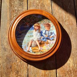 Patience Fishing Boy Girl Collector Plate Reco Int