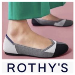Rothy's ‘the flat’ buffalo plaid round cap toe black white slip on shoe (9)$50Phoenix, AZ