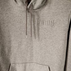 Puma Embossed Logo Hoodie Men’s L Gray Pullover Sweatshirt NWOT