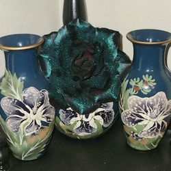 X4 VINTAGE HAND PAINTED PORCELAIN BLUE FLORAL ORIENTAL TRI EVER CHINA FLOWER VASE URN GINGER JAR TEAL BLUE BLING ROSE$55San Tan Valley, AZ