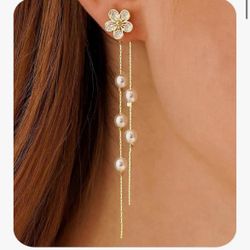 Brand: MUMREUES Gold Earrings for Women Trendy 14k Gold Plated Cubic Zirconia Flower Dangle Earrings Hypoallergenic Dainty Pearl Drop Chain Earrings J$5Gilbert, AZ