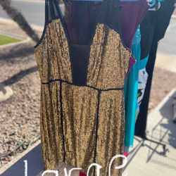 NEW XUCTHHC Dress Womens Medium sequin mermaid Style, Gold, Black, And Teal It Is Is A Long Dress Would Work For 5’6” + With Heels $79Gilbert, AZ