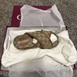 Gucci GG Jumbo Beige Purple Canvas Platform Wedge Sandals (Size 9)$300Scottsdale, AZ