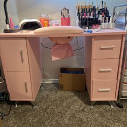 Nail Tech Table Pink Nail Desk with Fan Acetone Resistant Manicure Table Desk Electric Downdraft Vent, $160Mesa, AZ