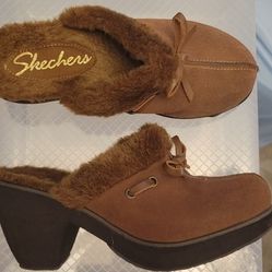 Skechers Vintage Brown Suede Fur-Lined Platform Mules-Disco Bunny-Size 7$25Mesa, AZ