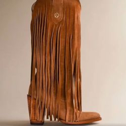 Brother Vellies Atlas Fringe Brown Suede Western Knee High Tall Boots$350Phoenix, AZ