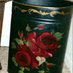 VINTAGE BLACK METAL HAND PAINTED FLOWER ROSE TOLE TRASH BIN GARBAGE CAN WASTE BASKET BATHROOM DECOR$35San Tan Valley, AZ