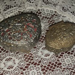 X2 VINTAGE ORNATE SILVER ANGEL CHERUB RED FLORAL FLOWER ROSE HEART FOOTED JEWELRY BOX CASKET TRINKET$40San Tan Valley, AZ