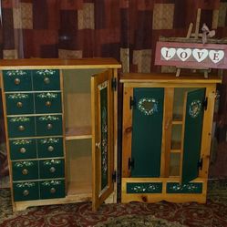 X2 VINTAGE HAND PAINTED FLORAL FLOWER ROSE COUNTRY FARMHOUSE SHELF DRAWER STORAGE CABINET SET$140San Tan Valley, AZ