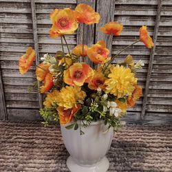 Ht-15in Width-12in HANDMADE artificial Yellow/orange Floral In A White Ceramic Vase$15Mesa, AZ