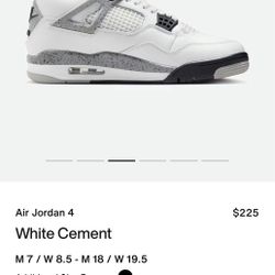 Jordan Retro 4 “White Cement” Size 10 $325$325Chandler, AZ