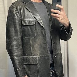 THICK Black Leather Jacket Polo by Ralph Lauren Distressed Leather Coat XL Blazer$250Chandler, AZ
