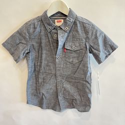 Levi’s Boys Blue Button Down Collared Shirt Short Sleeves Sz 5 NWT New $40 MSRP Color is Blue with very faint paint splatter type colors all over the $18Mesa, AZ