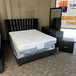 Queen Black And Gold Upholstered Bedroom Set $899Mesa, AZ