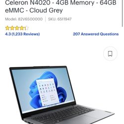 Lenove ideapad 1i 64GB laptop$125Scottsdale, AZ