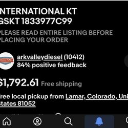 International Gaskets Kit 1833977c99$1,200Phoenix, AZ