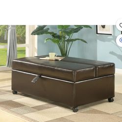 Ottoman- Potato Barn Black Leather Ottoman With Wood Base$150Queen Creek, AZ