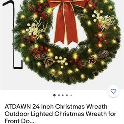 ATDAWN 24 Inch Christmas Wreath Outdoor Lighted Christmas Wreath for Front Do...$30Phoenix, AZ