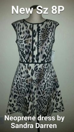 New Sz 8P women's Neoprene 'Scuba' leopard print fit n'flare dress by Sandra Darren party nwt$12Gilbert, AZ