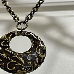Vintage Bronze Toned Mod Black and Gold Enameled Pendant Necklace$10Guadalupe, AZ
