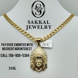 10K Gold Cuban Link (Cadena Cubana) With Indio Pendant. $70Scottsdale, AZ