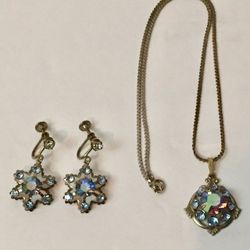 Vintage 50s AB Blue Prong Set Gemstones Necklace & Screw Back Dangle Earring Set$30Scottsdale, AZ