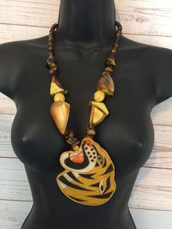 TIGER'S Eye Beads & Stacked Resin Stone Necklace Tiger Head OOAK Statement$34Fountain Hills, AZ