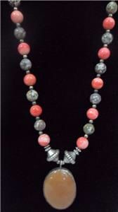 LEOPARD JASPER & CARNELIAN BEADS PENDANT CHALCEDONY SILVER TONE NECKLACE 29"$28Fountain Hills, AZ