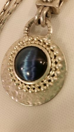 Blue Tiger Eye Cabochon style pendant with a convex formed silver toned reverse$25Mesa, AZ