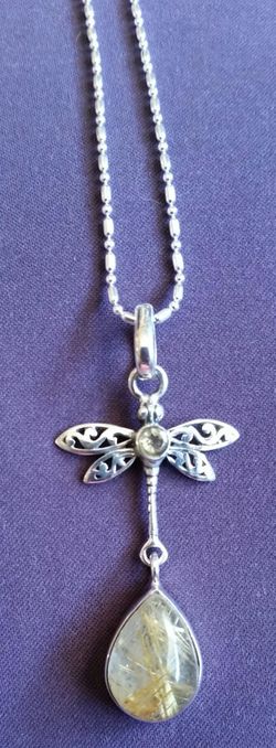 GENUINE DRAGONFLY GOLDEN RUTILE STERLING SILVER PENDANT NECKLACE JEWELRY$55Tempe, AZ