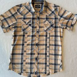 Size L BKE Vintage men's short-sleeve plaid pearl snap western shirt #2$15Mesa, AZ