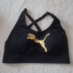 L NEW Puma Moto Active Tight Legging Black Mesh Panels Gold Logo Large Womens $23Mesa, AZ