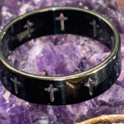 Prayer ring size 11 black with the Lord's prayer and a cross. It's also a fidget ring where the middle spins if you want to.$10Gilbert, AZ