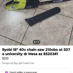 Ryobi 18" Chain Saw$210Mesa, AZ