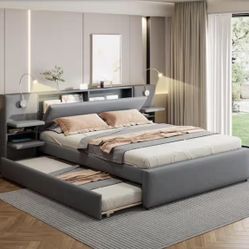Wood Frame Queen Linen Platform Bed with 2 Reading Lights$300Phoenix, AZ
