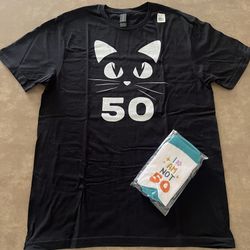 NWT Medium cat t-shirt with a 50 and socks that say “I am not 50.”$10Gilbert, AZ
