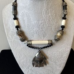 Black & White Beaded Fish Pendant Necklace $8Gilbert, AZ