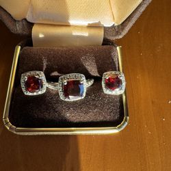 Cushion Cut Garnet Ring And Matching Pierced Stud Earrings In Halo Sterling Silver Setting$80Mesa, AZ