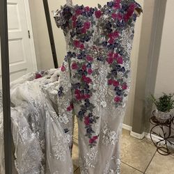 Elegant silver party dress with removable skirt. alterations were made size 12 TOUMAJNEAN COUTURE. Originally the price is $950$400Phoenix, AZ