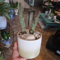 Rooted pine cone cactus in five inch.Ceramic pot with shelves and rocks$7Chandler, AZ